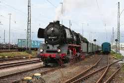 The Bahnbetriebswerk (Bw), or railway motive power depot Wittenberge, looks back over more than 160 years of history. Once, Bw Wittenberge was one of the largest on the German State Railway (DR). As long ago as 1846, the Berlin-Hamburg Railway (BHE) started using the first loco-shed, today known as No. 3 shed. In 1872, there followed a roundhouse with 18 tracks and a turntable at its centre (later known as No. 1 shed). Between these two sheds, a roundhouse shed was built in 1889, the "historic engine shed" of today. Two water towers were added in 1873 and 1898, with various workshops and locomotive servicing facilities expanding the motive power depot which in 1915 reached the size we see today.