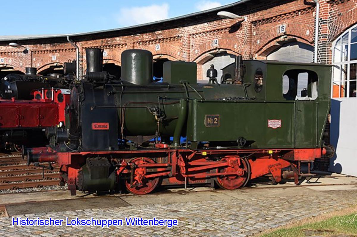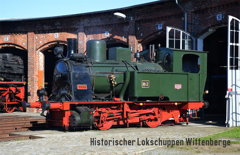 The four-coupled steam loco "Emma" was built as one of a large number of locos to an identical design, intended for industrial shunting work in the 1920s by Hanomag in Hanover. Our locomotive was delivered to the sugar factory in Rethen (near Hanover) in 1925. There she was used as locomotive No. 2 for shunting wagons during the sugar beet campaigns until the end of the 1960s, when she was taken out of service. She was bought in the early 1970s and her new owner put her on a short piece of track in his garden in Schleswig-Holstein where she was later protected by a greenhouse-like hall.