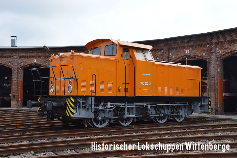 diesel locomotive 345 072-3| Builder: | LEW Henningsdorf | | Type: | V 60 | | Constructed: | 1977 | | Works number: | 15603 | | Power output: | 650 PS | | Maximum speed: | 60 km/h | | State: | Exhibit |