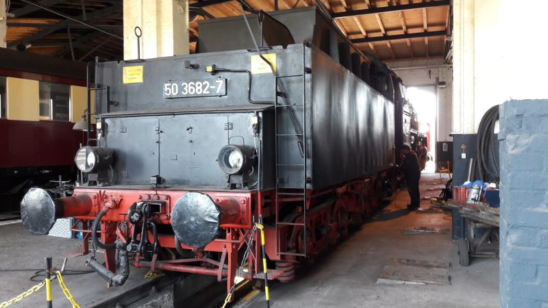 50 3570-4 durch. Damit der „amtliche Stempel“ für die Durchführung der Untersuchung gegeben werden kann, müssen alle Teile an der Lok einwandfrei funktionieren. Da das beim Tender der Lok, also dem „Anhängsel“, in dem die Betriebsstoffe mitgeführt werden, noch einige Arbeiten mit sich zieht, wurde dieser Tender mit dem der Dampflok