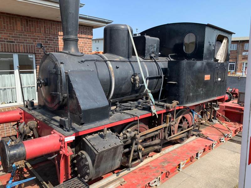At short notice and rather unexpectedly a new exhibit reached us today, which will probably stay in the museum for some time. It is a small Orenstein & Koppel shunting locomotive, originally constructed for the municipal gas works in Karlsruhe. The locomotive was in service there from 1919 to the mid 1960s. After that, she changed hands several times over the years, one of her resting places being Almstedt-Segeste and finally she came to the South German Railway Museum in Heilbronn, which has now sold the locomotive. The new owner is planning to restore her to full working order