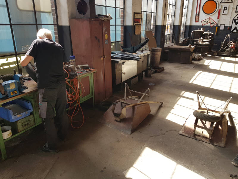 Nicht zu unterschätzen sind unsere innerbetrieblichen Transporte und nichts ist ärgerlicher, wenn die benötigten Schubkarren mal wieder einen Platten haben. Daher hatte sich ein Kollege erbarmt und neue Schläuche in die Reifen eingebaut.
