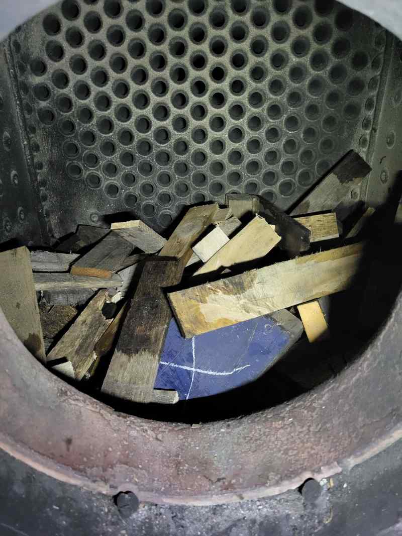 Then the firebox was filled with wood, which is burnt to slowly warm up the boiler. The fireboxes of the other steam locomotives were also filled. Here a view into our steam locomotive Emma.