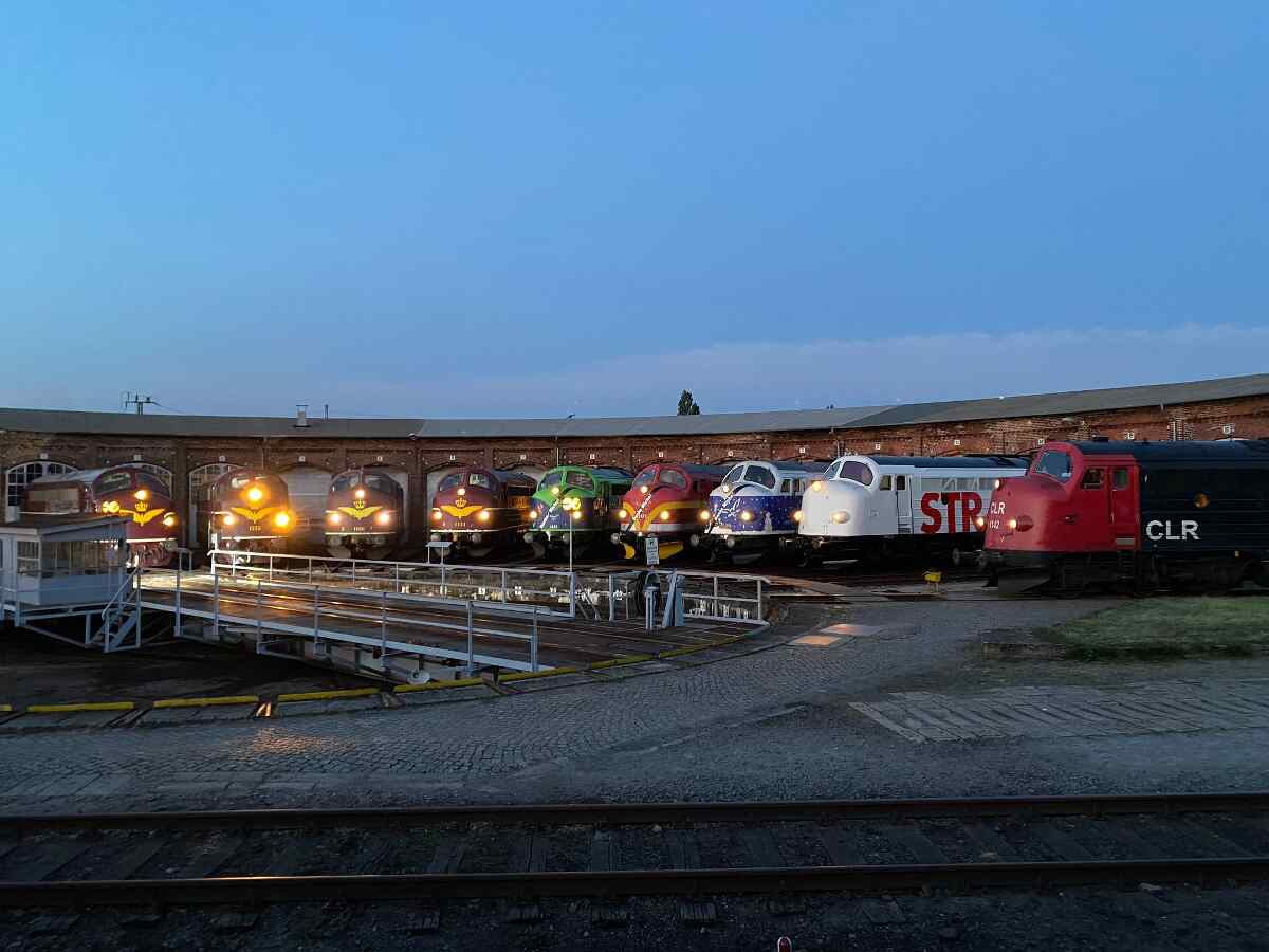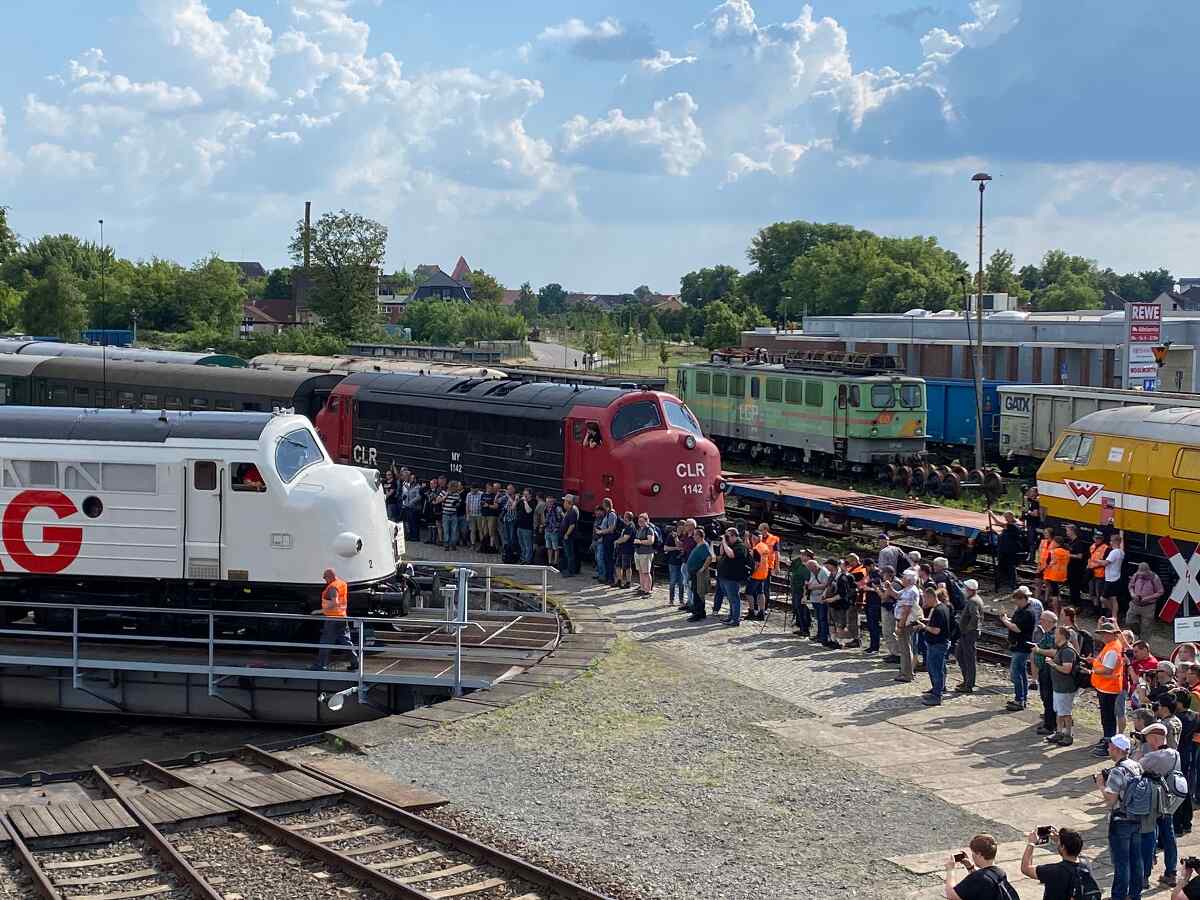 Exhausted but happy, we look back on last weekend, when a total of 10 diesel locomotives from the Swedish manufacturer Nydqvist och Holm AB (abbreviated to NoHAB) gathered at our museum in Wittenberge on the initiative of the NoHAB-GM-Gruppe Deutschland e.V. association and attracted visitors from near and far to the town. There was a double anniversary to celebrate, as the first locomotive of the type on display was built 70 years ago. Some of the impressive diesel giants have also been operating for German companies for 25 years.