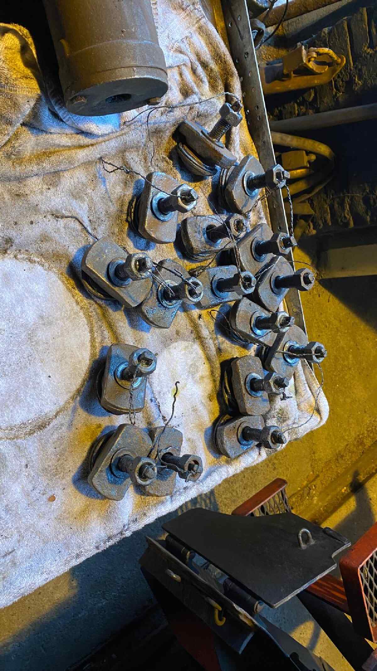 We also removed the drain valves and safety valves from the drive cylinders. One is used to drain condensation in the steam cylinders. The others are for emergency draining if too much condensation has collected in the cylinders and the movement of the pistons presses so hard against the cylinder covers that they could burst. It is well known that water cannot be compressed.