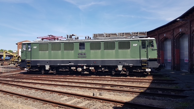 The first new exhibit is the electric locomotive 142 118, which was built in the mid-1960s by LEW - Lokomotivbau Elektrotechnische Werke ?Hans Beimler? (Hennigsdorf). It was put into service by the Deutsche Reichsbahn in May 1967 and was stationed in Halle. It was used for passenger and goods trains until it was decommissioned in 1994.