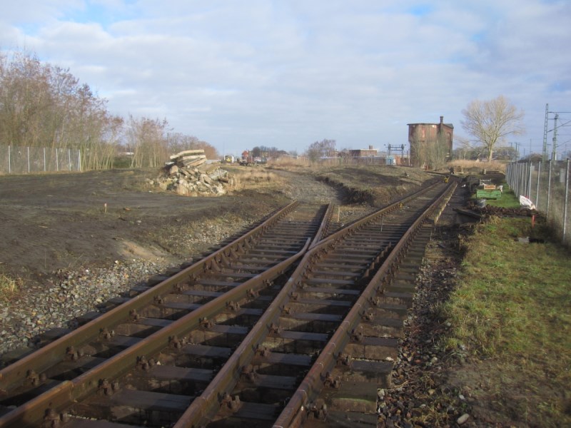 Anschluss zu dem Gleis, das in der Bauphase 2 in Richtung Bahnhof verlegt werden soll.