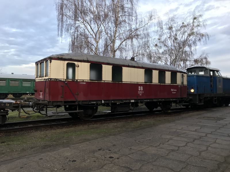 The Museum of the Historic Engine Shed Wittenberge is one attraction richer. In the night of 16 to 17.12.2019, trailer 190 851-6 reached its new location in Wittenberge. It looks back on an eventful history. The vehicle was built in 1927 by the Wegmann company as a 2-axle powered diesel railcar "VT 804". The Deutsche Reichsbahn Gesellschaft had purchased a total of four units of this type in order to test more economical operations on secondary lines. Two of these remained in the Soviet-occupied zone after the war. In 1951 the engine was removed from our railcar and the GDR Deutsche Reichsbahn used it from then on as a trailer, with the number VB 140 602, and it saw service on the R