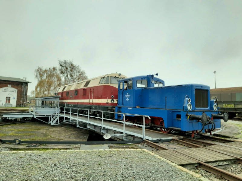 One of the two operable class V23 diesel locomotives was taken to the workshop to be thoroughly cleaned. The locomotive has so far the number 2 of the Stendal pulp mill and a blue livery. It will soon be painted orange and bear the number 102 076. This is a reminder of the use of an identical locomotive with this number at the Wittenberge depot in the days of the Deutsche Reichsbahn. The locomotive is to be used in future together with the VB 197 805 sidecar, which will soon be operational again. This combination of such sidecars and locomotives used to be typical for the branch lines in the Prignitz and the neighbouring Altmark.