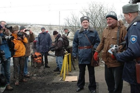 Zur besonderen Gaudi der Eisenbahn-Enthusiasten, aber auch der Dampflokfreunde hat Seiler sogar eine "Verhaftung" durch die Transportpolizei organisiert. Christian Jacholke und Ingo Moschall von der Interessengemeinschaft "VEB Schwellenschutz - Die Transportpolizei" mimen die Ordnungshüter. Cornelius Dudensing lässt sich für die Bilder der anderen Eisenbahnfans immer wieder verhaften. Der Schweizer aus Riehen bei Basel arbeitete auf einem Rangierbahnhof. Eisenbahngeschichte ist sein Hobby. "Schade, dass hier bald alles vorbei ist", sagt er.
