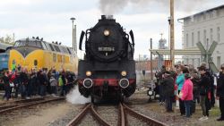 Noch einmal können die Besucher am Wochenende mit der 503570-4 auf dem Führerstand mitfahren. Die Schlange reißt bis zum Nachmittag nicht ab. Familie Jung aus Lindow (Mark) ergattert einen Platz. "Es ist einfach toll. Wir sind das erste Mal hier und total begeistert, was hier geboten wird", erzählt Steffi Jung.