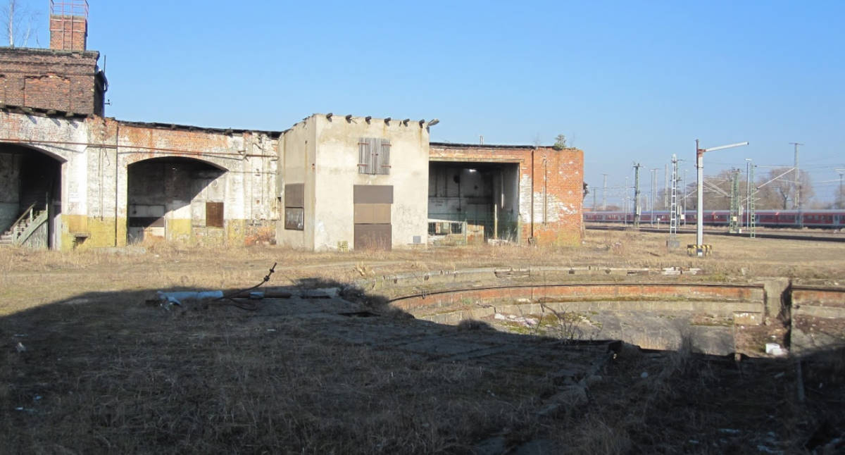 In the area of the former locomotive shed I, you could still see the pit of the former turntable a good 10 years ago. Today the pit is filled in and a track runs over it.