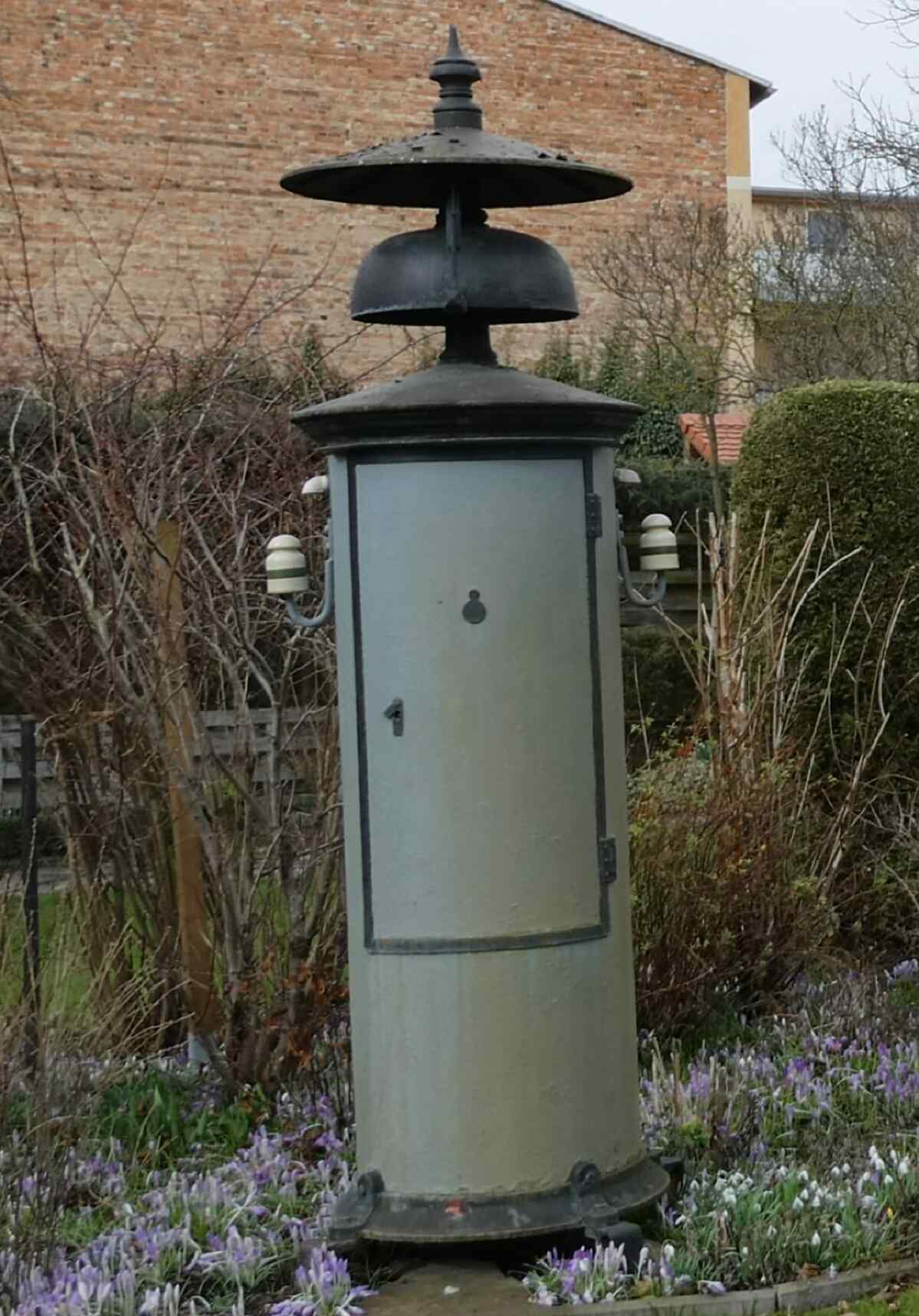 Or they were mounted on equipment houses specially made for the ringing stations, which could be the size of a telephone box. Again, there were different designs made of wood or metal, depending on the manufacturer and railway company that used them.